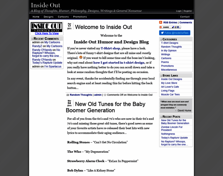 Inside Out is a Blog of original thoughts, humor, funny t-shirt designs, philosophy, cartoons, writings & general nonsense.