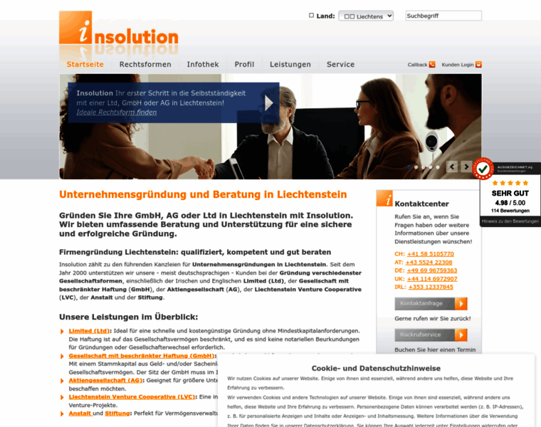 Insolution Kanzlei für Unternehmensgründungen in Liechtenstein. Gründung verschiedenster Gesellschaftsformen, einschließlich der Irischen und Englischen Limited (Ltd), der Gesellschaft mit beschränkter Haftung (GmbH), der Aktiengesellschaft (AG), der Liechtenstein Venture Cooperative (LVC), der Anstalt und der Stiftung.