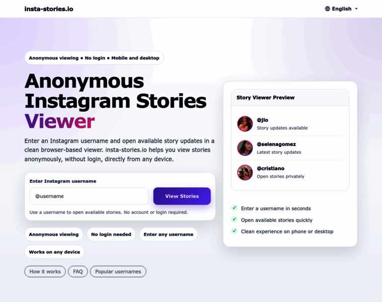 Anonymous Instagram Stories Viewer online. View story updates without login, enter a username, and open stories quickly on any device.