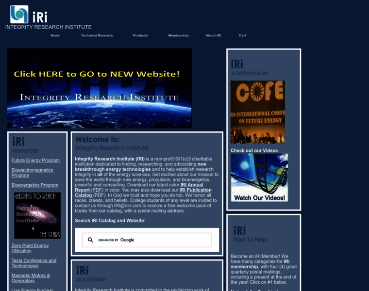 Integrity Research Institute is a nonprofit corporation dedicated to energy research, future technologies, and public education. Research projects are conducted in the areas of energy generation. Located at 5020 Sunnyside Avenue, Suite 209, Beltsville MD 20705, Phone: 301-220-0440.