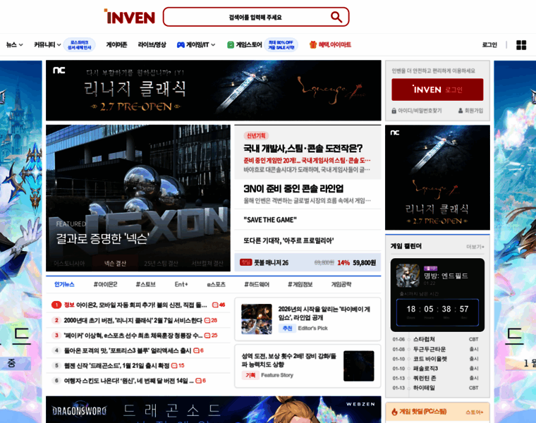 인벤은 온라인과 모바일, PC, 콘솔 등 모든 플랫폼의 게임 소식을 다루며, 최신 뉴스와 게임 공략, 게임 순위 등 다양한 정보를 게이머들에게 제공합니다.