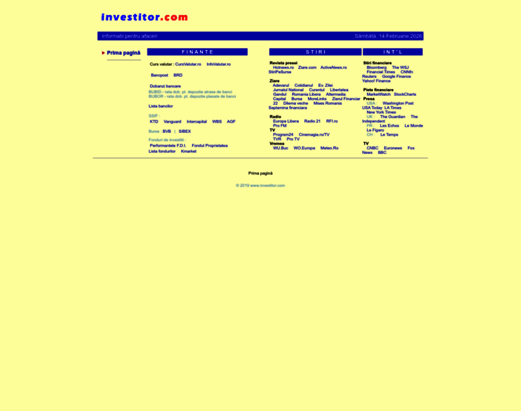 Informatii despre afaceri si investitii in Romania si in lume, sub forma legaturilor catre site-urile celor mai importante firme, institutii sau asociatii care activeaza in domeniul financiar