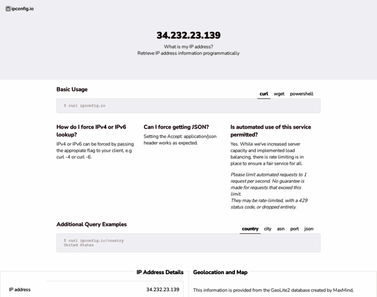 This website is hosted with CloudFlare, Inc., which reserves the following IP addresses for ipconfig.io: 104.21.73.189, 172.67.165.110. Moreover, DNS used with this website include alice.ns.cloudflare.com, apollo.ns.cloudflare.com. Subnet identifier ranges from 104.16.0.0 to 104.31.255.255. Classless Inter-Domain Routing (CIDR) is 104.16.0.0/12. ARIN net type is Direct Allocation.