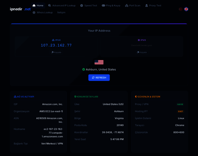 Gerçek zamanlı IP, Whois, Port ve Hız testi araçları. Ipnedir.Net IP Sorgulama | IP Adresi Sorgulama & Bulma Ip Adresim Nedir?