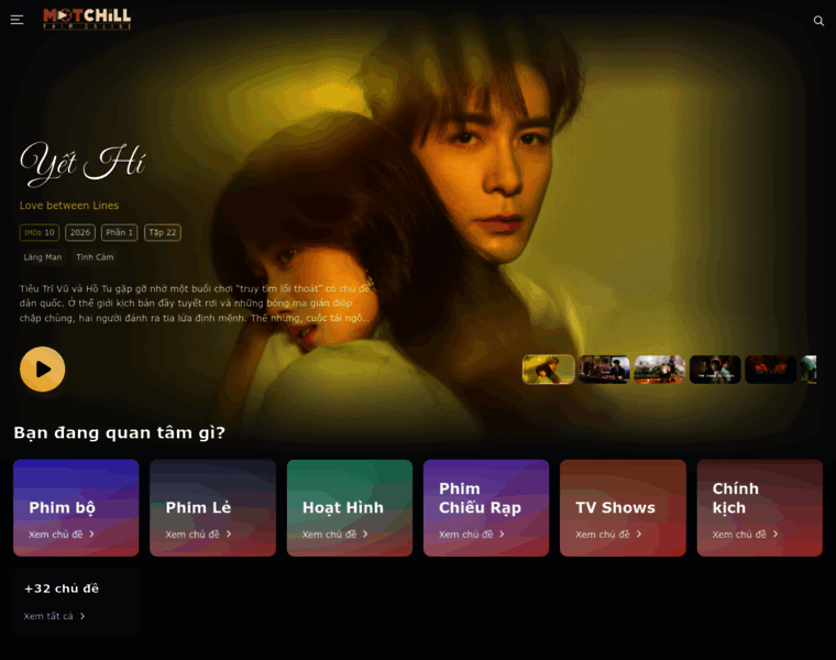 Motchill - Trang xem phim online miễn phí số #1 Việt Nam. Full HD vietsub, thuyết minh +lồng tiếng. Giao diện đẹp mắt, cập nhật phim chiếu rạp, phim bộ Trung Quốc và Hàn Quốc... Nhanh nhất!