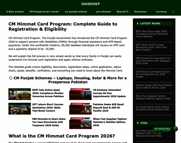 CM Himmat Card Program. The Punjab Government has introduced the CM Himmat Card Program 2026 to support persons with disabilities (PWDs) through financial assistance