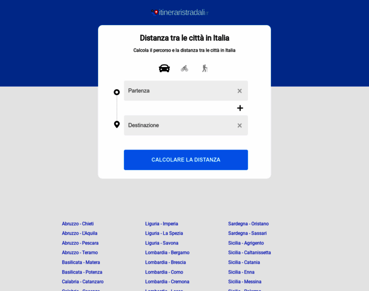 Calcola la distanza tra le città in Italia e trova facilmente le strade migliori.
