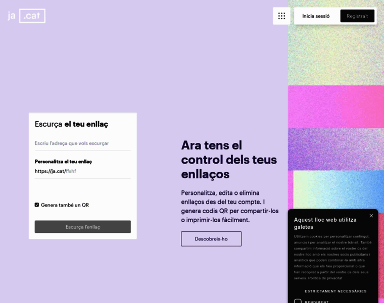 Retalla qualsevol enllaç i genera el seu codi QR de forma gratuïta, segura i en català. Perfecte per compartir a xarxes socials o campanyes. Tot a ja.cat!