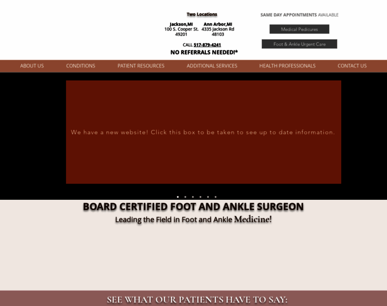 Podiatry clinic focusing on all foot and ankle conditions in Jackson & Adrian MI. Board Certified Foot and Ankle Surgeon specializing in conservative care first.