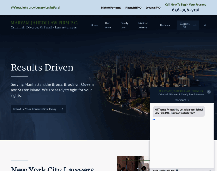 Maryam Jahedi Law Firm P.C. provides divorce, family law, and criminal defense representation in New York City. Serving Manhattan, Brooklyn, Queens, The Bronx, Staten Island & Westchester. Call 332-237-3700 for a free consultation.