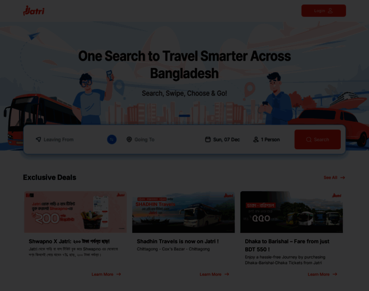 Book rental, bus, and launch tickets online with Jatri. Find routes, compare fares, and enjoy easy, hassle-free online ticket booking today!