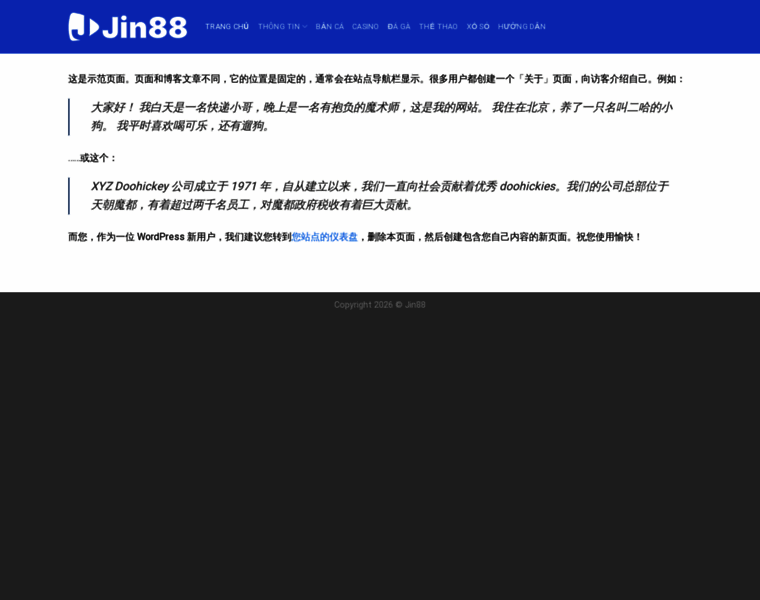这是示范页面。页面和博客文章不同,它的位置是固定的,通常会在站点导航栏显示。很多用户都创建一个「关于」页面,向访客介绍自己。例如: