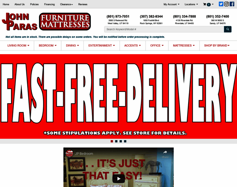 John Paras Furniture is a family owned Furniture and Mattresses store located in Salt Lake City, UT. We offer the best in home Furniture and Mattresses at discount prices.