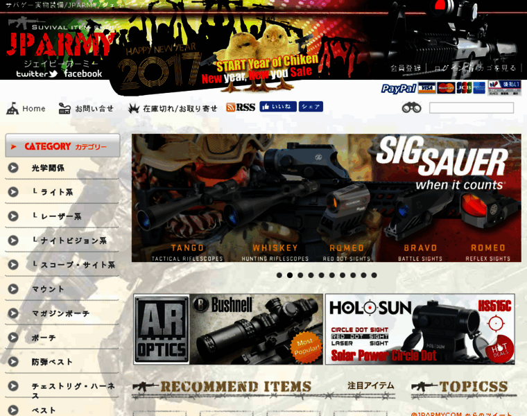サバイバルゲームの実物装備品・狩猟用、実銃用スコープならjparmy(ジェイピーアーミー)で!アメリカ軍で使用されている実物の装備を販売しております。ナイトビジョン・ハンティンググッズやレアな一点ものなど、日本では入手困難なアイテムも多数用意し、見て楽しい!買って嬉しい!お店作りを目指しています。