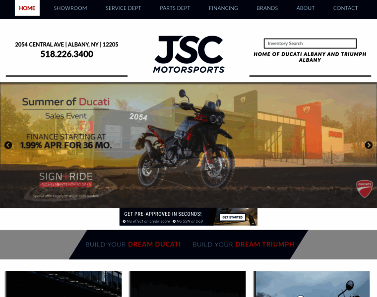 JSC Motorsports carries a great selection of Ducati and Triumph motorcycles for sale in Albany, New York. We offer service, parts, & financing, too. Visit our showroom at 2054 Central Avenue or call 518-226-3400 today!