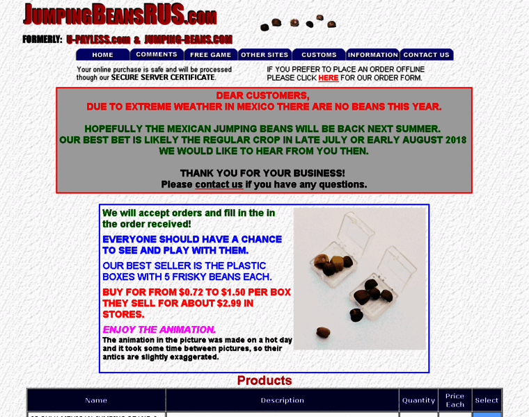 Jumpingbeansrus.com Homepage Change Through The Years