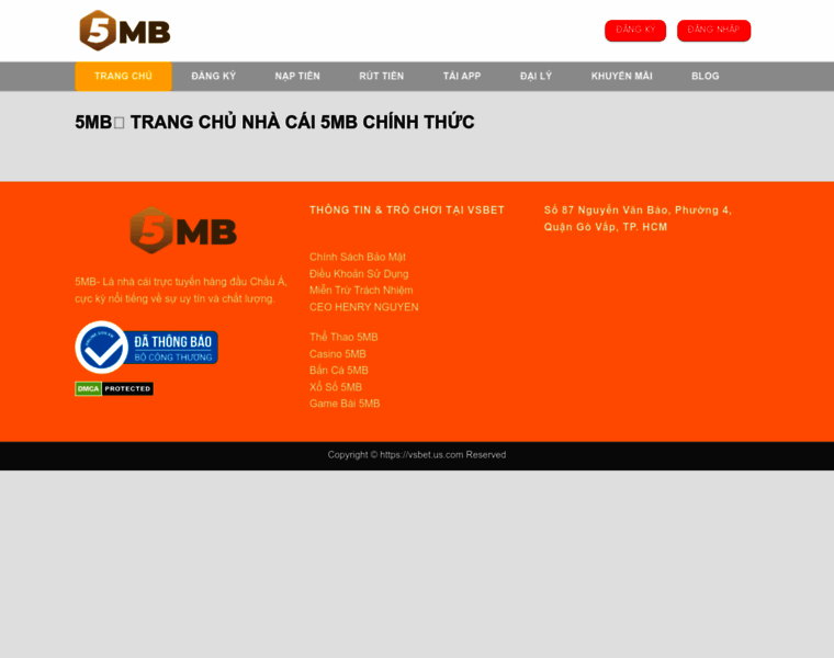 5MB là nhà cái cung cấp dịch vụ giải trí chuyên nghiệp hàng đầu Châu Á. Khách hàng thường xuyên trải nghiệm và săn đón với tần suất cực cao