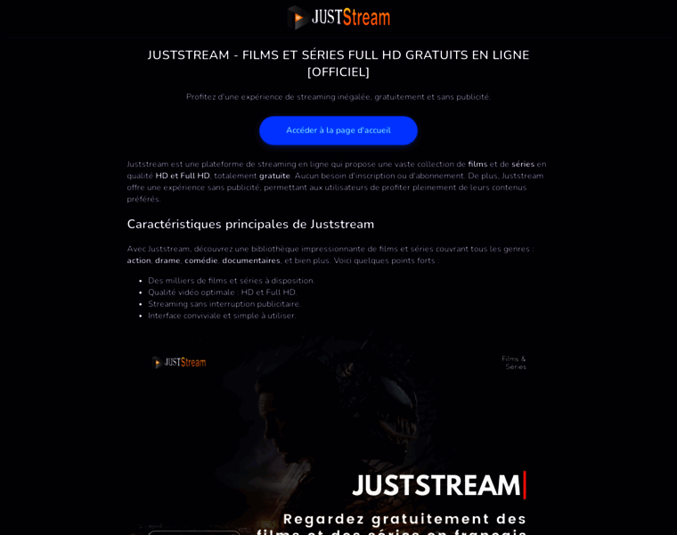 Juststream - Regardez vos films et séries en Full HD gratuitement, sans pub ni inscription. Une expérience optimale pour vos contenus préférés.