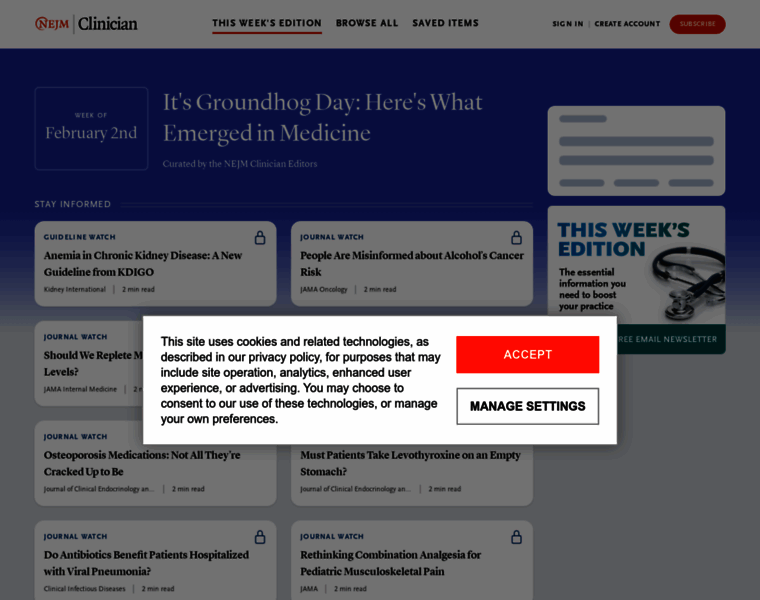 NEJM Clinician's physician editors deliver carefully curated summaries of the most important research and guidelines from over 150 medical journals.