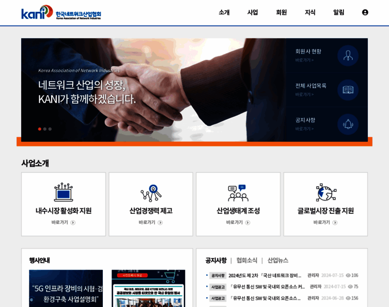 협회소개, 네트워크사업, 해외수출, 정보지원 등 안내