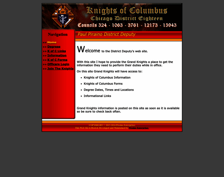 Knights of Columbus District 18. With this site I hope to give the Grand Knights one place to get the information they need to perform the office of Grand Knight and submit any questions they may have while in office.