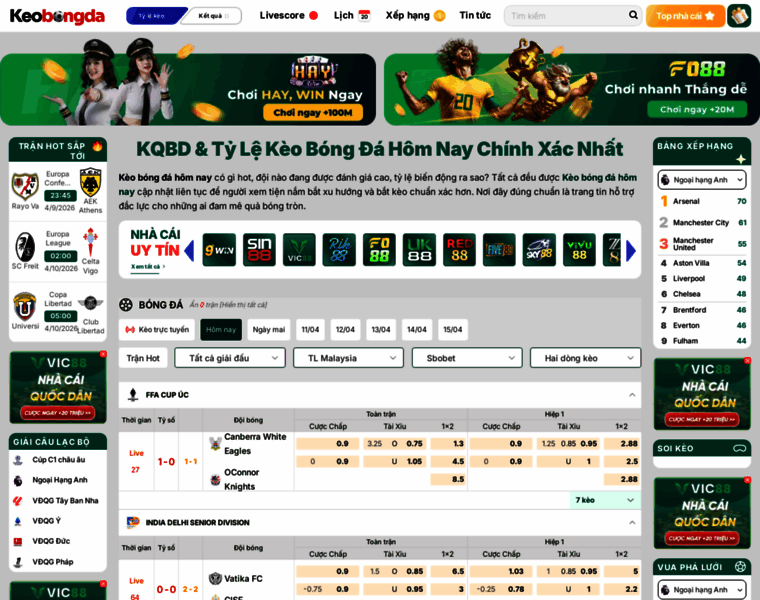 Kèo bóng đá hôm nay được tổng hợp chi tiết với tỷ lệ nhà cái, biến động và kết quả mới nhất. Truy cập Keobongda để theo dõi nhanh và soi kèo chuẩn xác hơn!