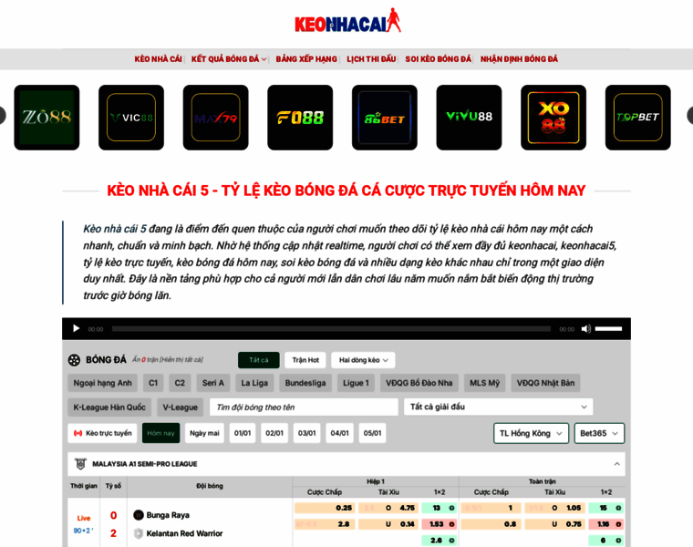Kèo Nhà Cái 5 (keonhacai5) trang tin soi kèo trực tuyến thể thao chuyên nghiệp cập nhật nhanh các nhận định bóng đá, tỷ lệ cá cược, soi kèo nhà cái mới nhất.