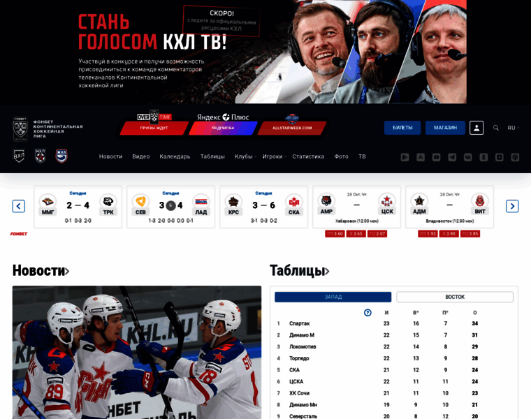 Приветствуем любителей хоккея на официальном сайте КХЛ! У нас Вы найдете новости, статистику, календарь игр, результаты матчей Континентальной Хоккейной Лиги.