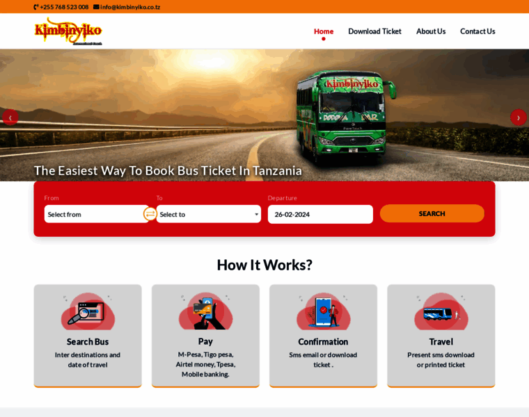 Book bus tickets online at cheap prices anytime, anywhere in Tanzania with Kimbinyiko. Select boarding and destination points, date, and choose your seat easily