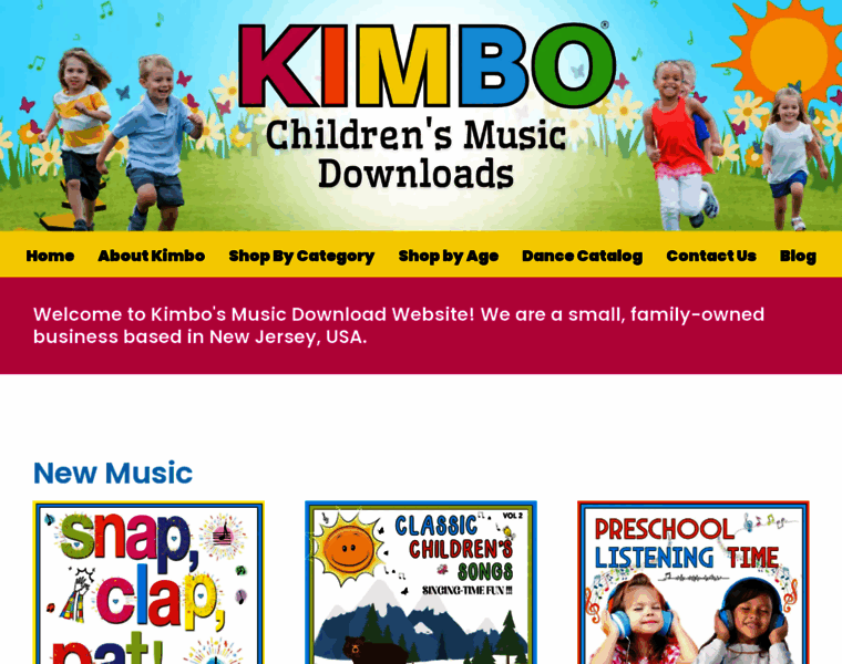 Home page of Kimbo Children's Music, an online store from Long Branch
