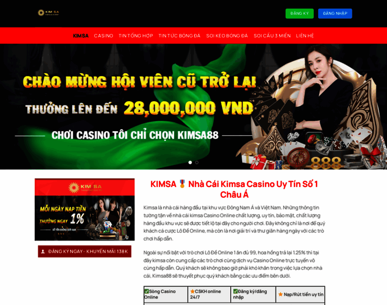 Kimsa là nhà cái cá cược trực tuyến uy tín, được cấp phép bởi PAGCOR. Sản phẩm đa dạng, giao diện sống động, hỗ trợ người chơi tại Việt Nam và toàn châu Á.