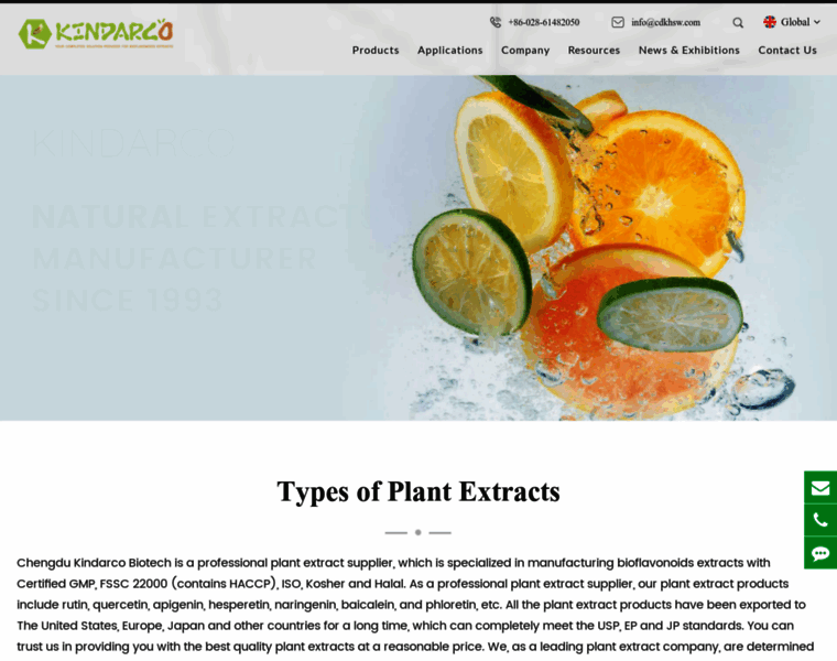 Kindarco is a plant extract manufacturer specialized in manufacturing bioflavonoids extract. All the plant extract products have been exported to the United States, Europe, Japan and other countries for a long time, which can completely meet the USP, EP and JP standards. Contact now!