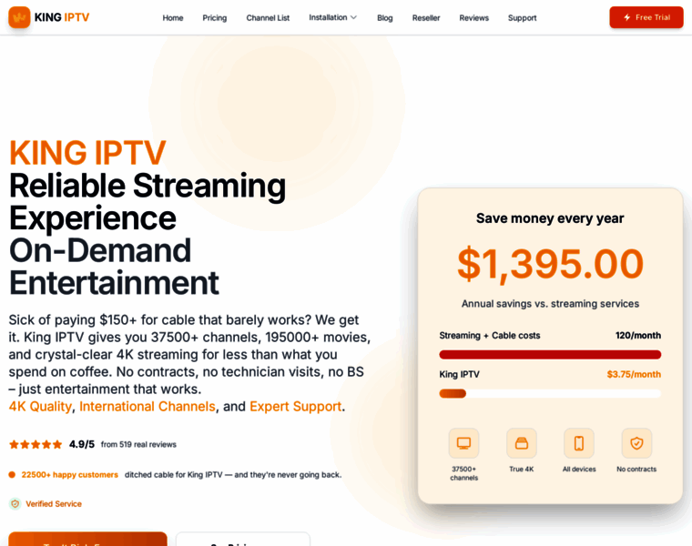 Tired of $150+ cable bills? Join 22500+ smart people who switched to KING IPTV. Get 37500+ channels, 195000+ movies in 4K quality. No contracts, no technician visits, no BS. Try free for 24 hours!
