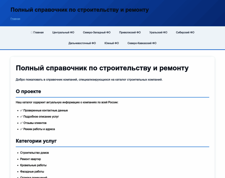 Полный справочник по строительству и ремонту. Каталог предприятий с контактными данными.