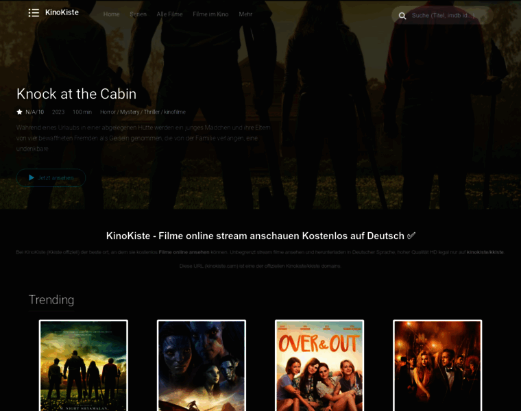 Bei KinoKiste können sie filme Streamen online Kostenlos anschauen auf Deutsch, neueste Komplette HD Filme online sehen legal nur auf kinokiste.