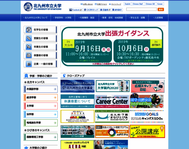 北九州市立大学のオフィシャルサイトです。大学案内、受験生向けの入学案内、在学生向けコンテンツ、また一般の方向けの公開講座情報など、北九州市立大学に関する情報をご覧頂けます。