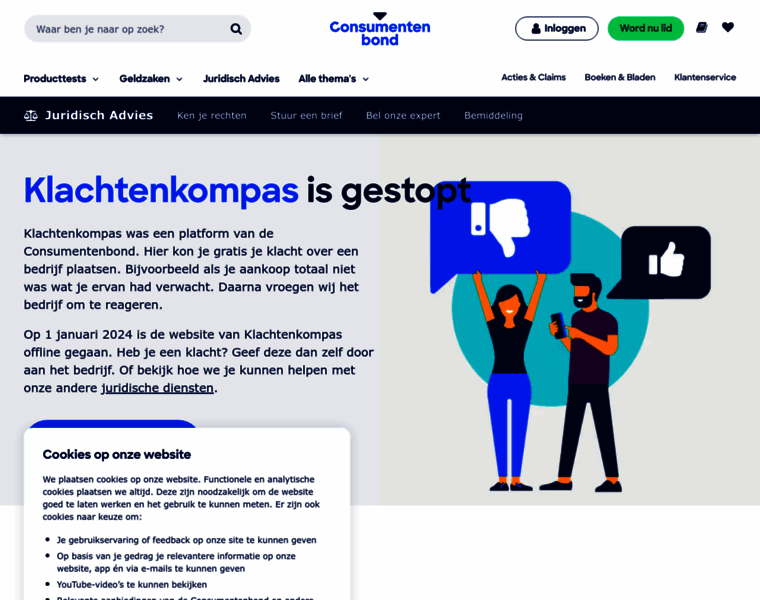 Op 1 januari 2024 is de website van Klachtenkompas offline gegaan. Heb je een klacht? Geef deze dan zelf door aan het bedrijf. Of bekijk hoe we je kunnen helpen met onze andere juridische diensten.
