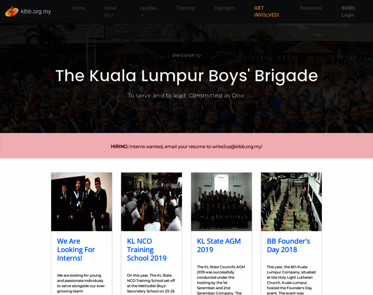 The Kuala Lumpur State Boys' Brigade (KLBB) was formed as part of BB Malaysia's initiative to streamline National administration, from the former District Councils of which KL was then part of the Central District. Formerly, Kuala Lumpur and Selangor was a single entity known as the Kuala Lumpur Battalion.