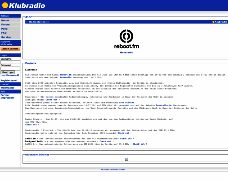 Klubradio.de Homepage Change Through The Years