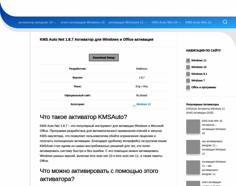скачать активатор KMS Auto Net 1.8.7 для Windows и Office. Бесплатная активация Windows 7, 10, 11 и Microsoft Office.