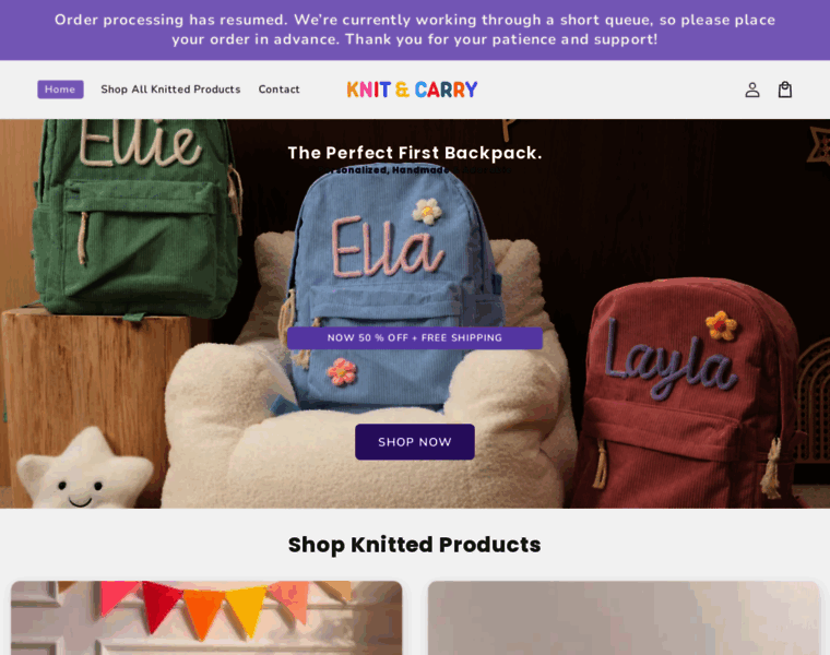 At Knit & Carry, we create personalized, handmade backpacks for children. Our custom designs are perfect for your child's first adventures.