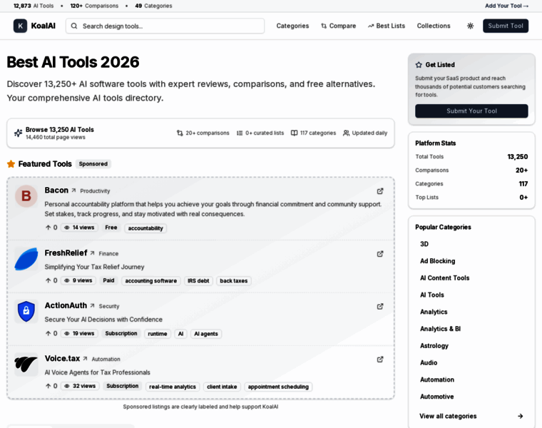 Discover the best AI tools in 2026. Browse our comprehensive AI tools directory with 12,874+ software reviews, comparisons, and free alternatives. Find the perfect AI solution for your business.