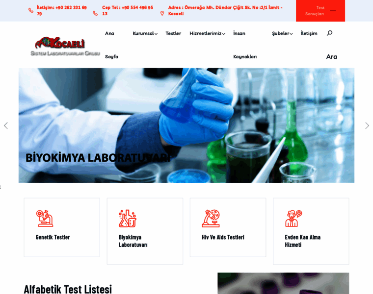 Kocaeli Sistem Laboratuvarı ; Biyokimya laboratuvarı Meslek hastalıkları Sprem testi Genetik testler Evden kan alma hizmetleri;