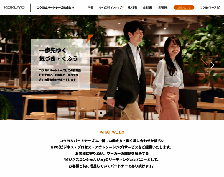 新しい働き方・働く場に合わせた幅広いBPOサービスを提供。「ビジネスコンシェルジュ」のリーディングカンパニーとしてお客様と共に成長していくパートナーであり続けます。