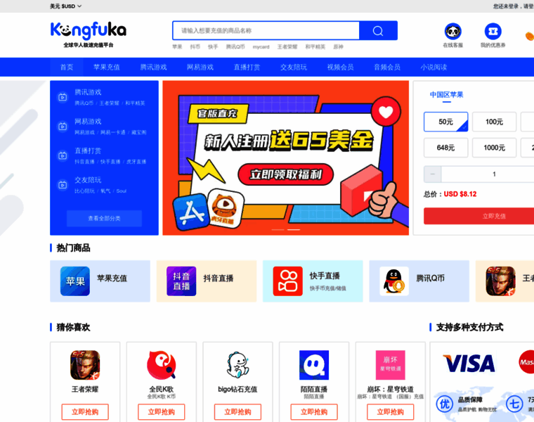 【功夫卡海外充值商城】海外充值抖音|苹果APP|游戏点卡_功夫卡代充