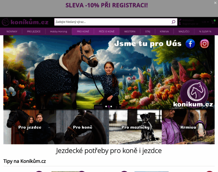 Prodej jezdeckých potřeb a potřeb pro koně, jezdeckého oblečení i krmiv pro koně za nízké ceny. Široký sortiment značkového zboží od HKM a Waldhausen.
