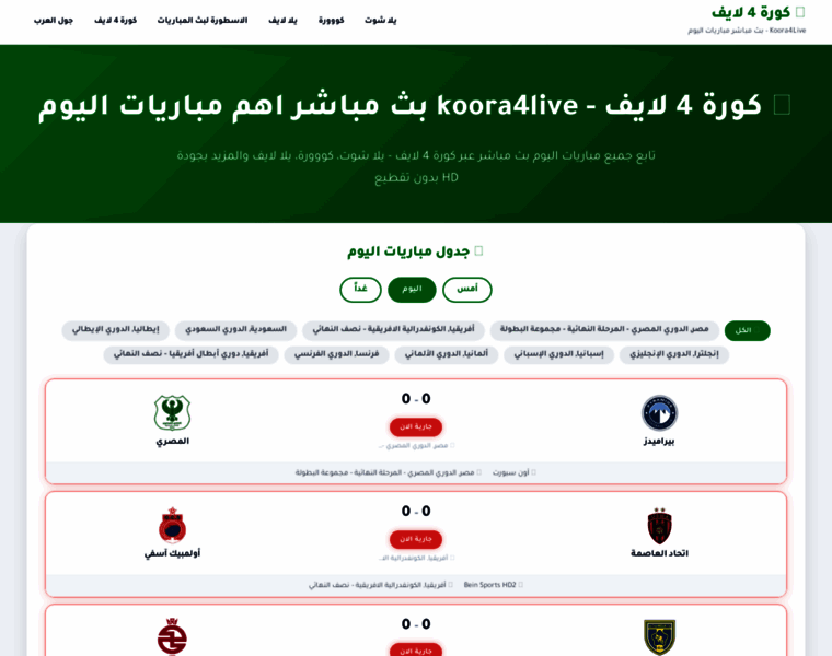 كورة فور لايف - kooora4live - كورة 4 لايف - koora4live