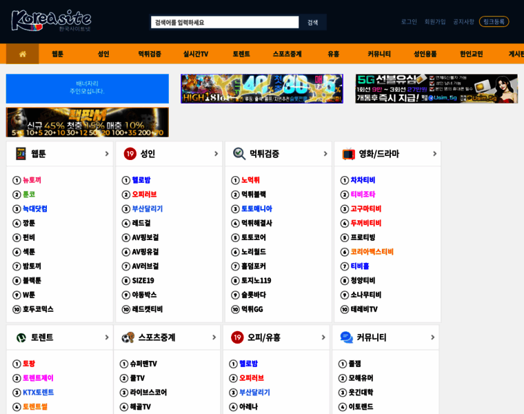 한국사이트넷 - koreasite.net! 모든 사이트들을 한눈에!무료웹툰,링크모아,유흥,먹튀검증,토렌트순위,영화다시보기,TV다시보기,애니24,모애니,오피,뉴토끼,호두코믹스,탑툰등 모든종류의 사이트순위를 한눈에 볼 수 있습니다.