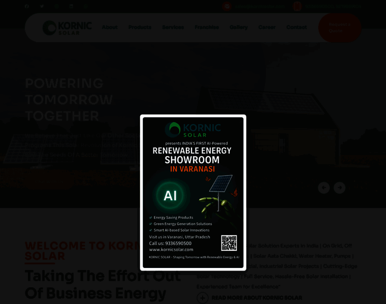 Kornic Solar is specialized in developing the high quality of customized and designed Solar systems for- On Grid, Off Grid, Hybrid, Solar Aata Chakki,Solar Water Heater and water pumps