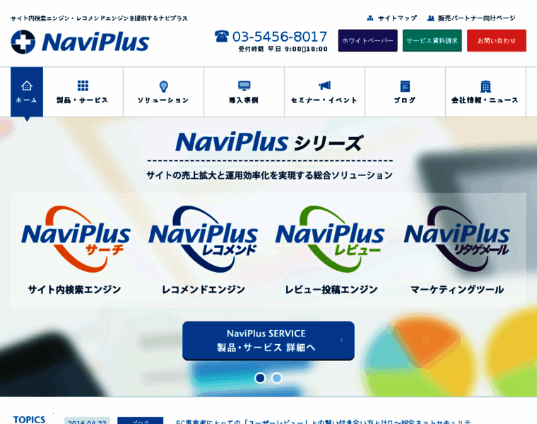 ナビプラス(NaviPlus) | ナビプラス(NaviPlus)は、サイト内検索エンジン・レコメンドエンジンの提供を通じて、サイトの活性化・運用効率化の支援を行っています。